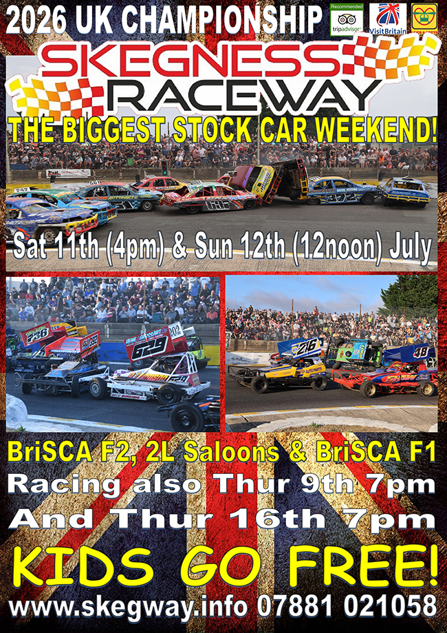 The 2026 UK Championship for Saloon Stock Cars will be staged at Skegness over the weekend of 11 & 12 July.