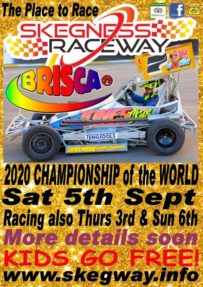 Skegness Raceway are pleased to announce the date of the 2020 BriSCA F2 Championship of the World. Saturday 5th Sept. For more information click here