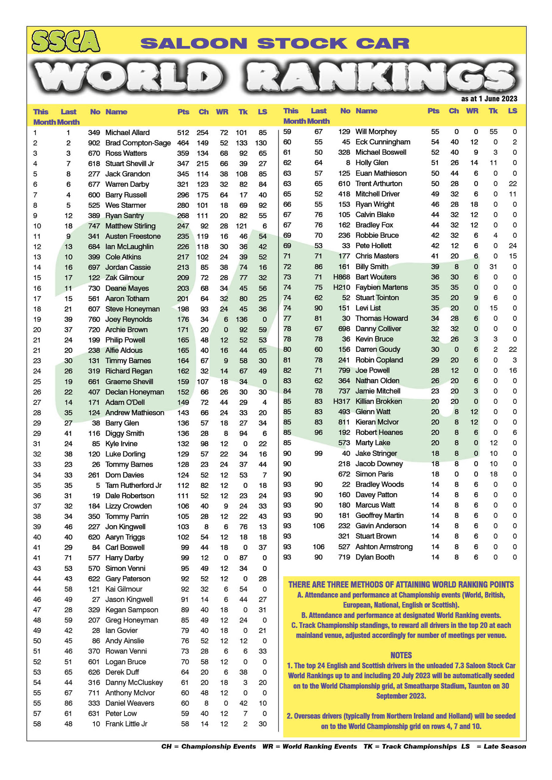 The latest World Rankings for 2023 effective 1st June 2023 have been published.
