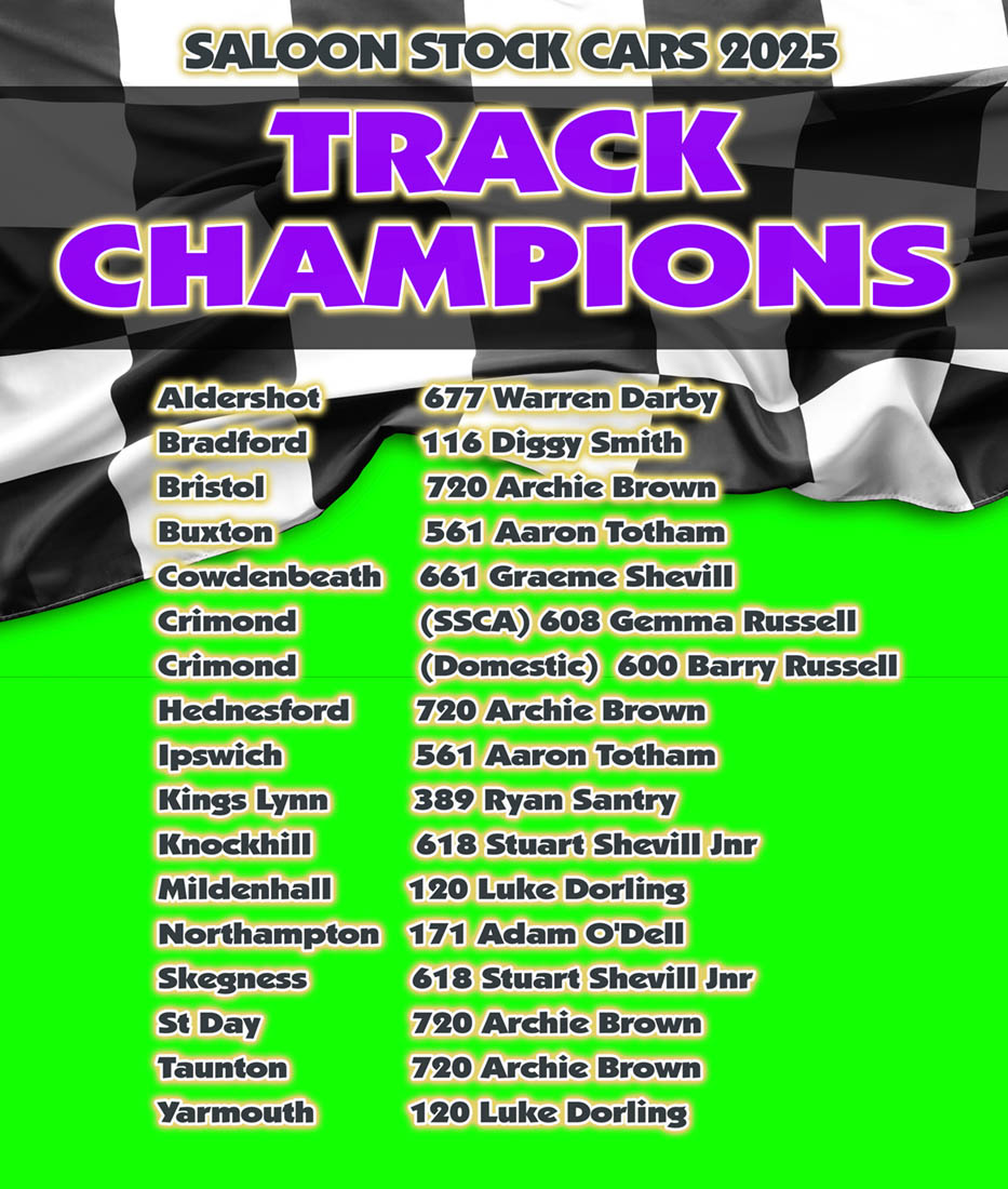 Congratulations are in order to the drivers who secured their place as Track Champion during the 2025 season.